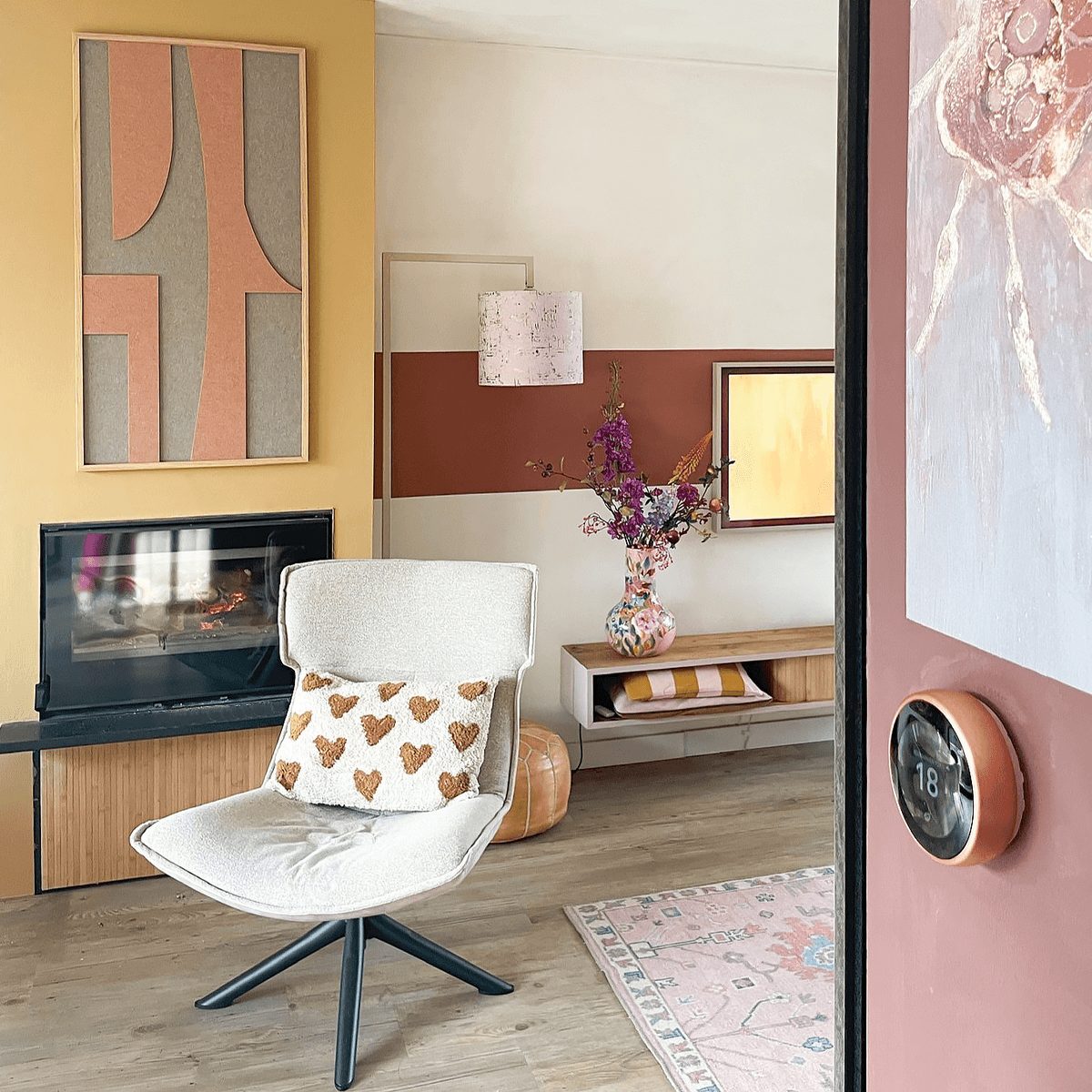 Möchtest du einen inspirierenden und lebendigen Raum schaffen? Wähle dann kräftige Farben wie Rot, Orange oder Gelb. Diese Farbtöne fördern die Kreativität und geben dem Raum Energie, perfekt für Brainstorming-Bereiche, Arbeitsplätze oder Kinderzimmer.