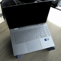 - Laptop auf Augenhöhe abstellen