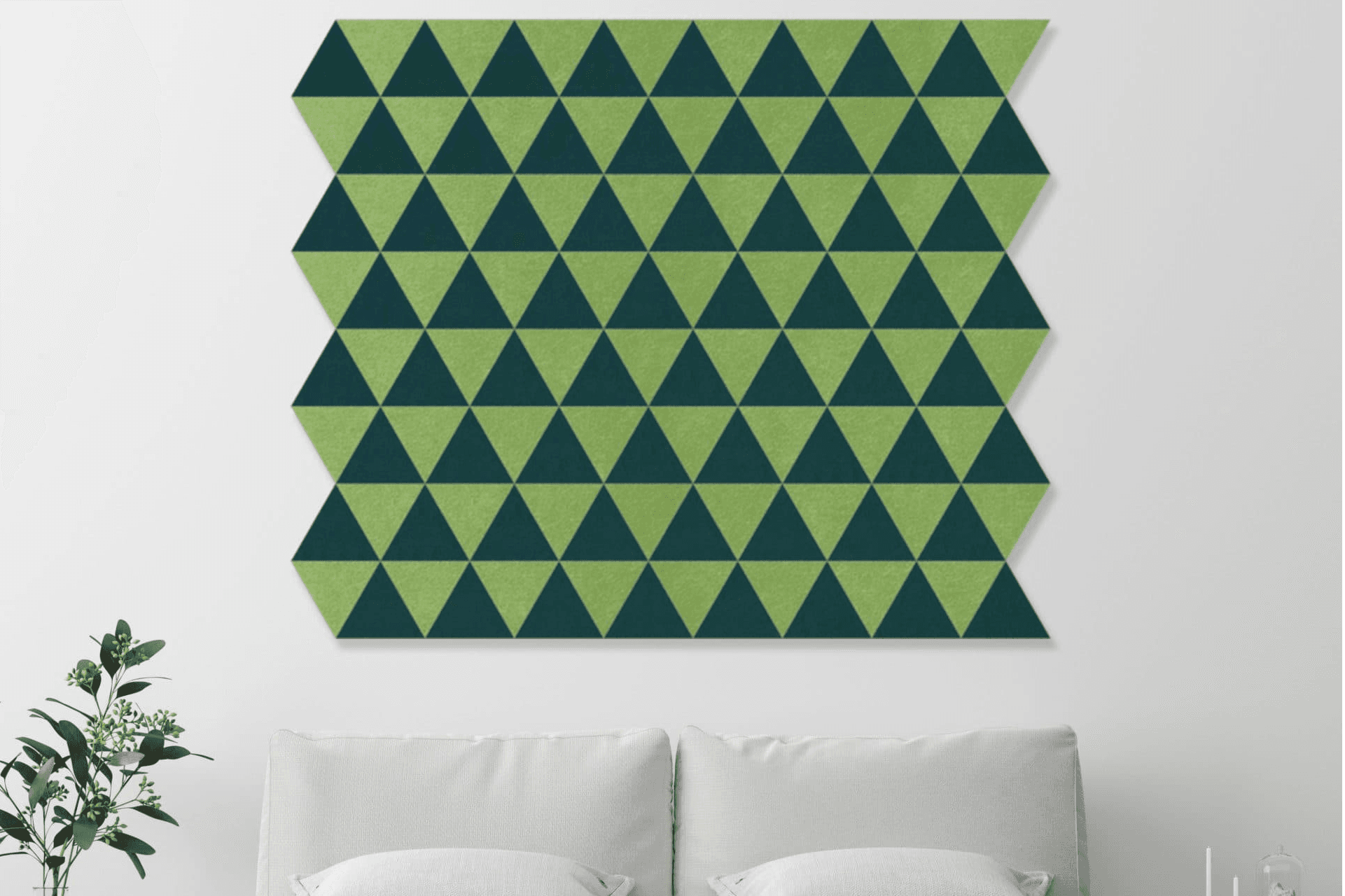 Der Stick Triangle ist ein selbstklebendes akustisches Wandelement, das Schall absorbiert und Ihrem Raum eine ansprechende Optik verleiht. Obwohl es den Schall dämpft, ist es vor allem für die Reduzierung leichter Nachhallgeräusche geeignet. Dank der selbstklebenden Rückseite lassen sich die Paneele einfach und ohne zusätzliches Werkzeug anbringen. Mit diesem speziellen dreieckigen Design können moderne und einzigartige Muster mühelos gestaltet werden.