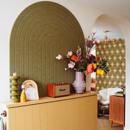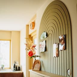 Verwenden Sie die Wall Arch als dekoratives Statement an der Wand oder als funktionales Pinnboard für Notizen, Karten oder inspirierende Bilder. Dank des leichten Materials und der selbstklebenden Rückseite lässt sich das Paneel ganz einfach anbringen.